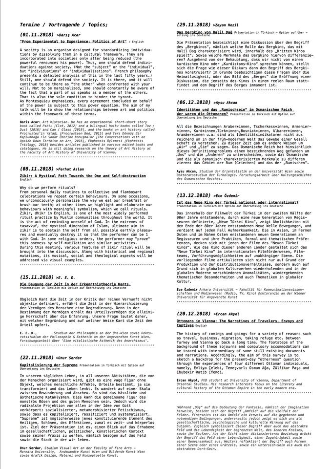 DÜŞ-UMFELD zweimonatige veranstaltungsreihe im oktober und november 2018